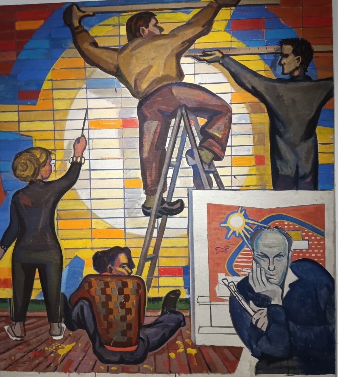 Про «Искусство в масштабе. Монументальная живопись Москвы» я не узнала бы, если б не подруга. Она разведала, рассказала, позвала. Оказалось, что даже во дворе-каре Музея Москвы выставку сразу не найти. Ткнулись в другой корпус, прежде чем попасть куда нужно. А учитывая тамошние масштабы и расстояния…